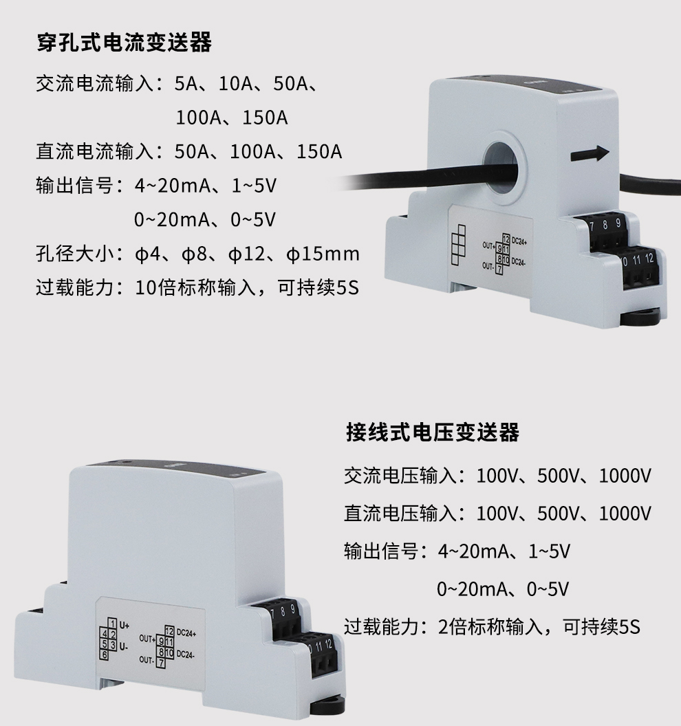 電流變送器/電壓變送器流線型外觀,簡約卡裝式結構,強抗干擾能力,高精準測量