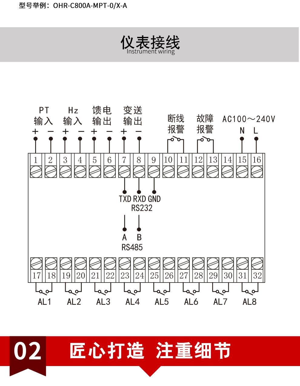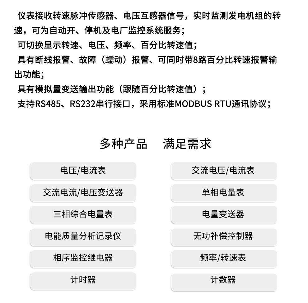 OHR-C800系列電廠專用轉(zhuǎn)速表適用于測量發(fā)電機組轉(zhuǎn)速,儀表雙屏顯示轉(zhuǎn)速、電壓、頻率、百分比轉(zhuǎn)速,有峰值記憶顯示、斷線報警、故障(蠕動)報警、8路繼電器跟隨百分比轉(zhuǎn)速輸出、模擬量變送輸出、RS232/485通訊接口等功能。